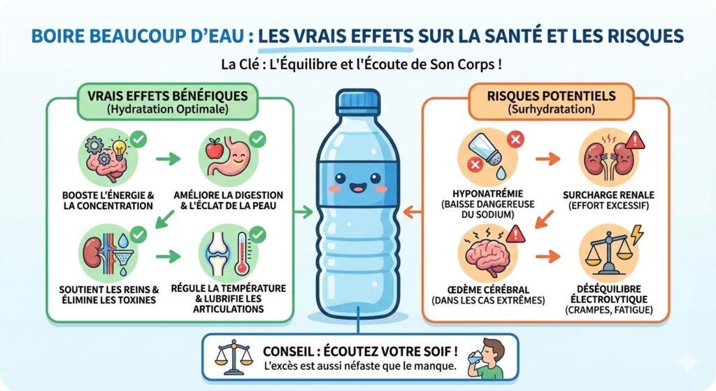 Boire beaucoup d’eau : les vrais effets sur la santé et les risques